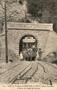 When the main line from Nice to Tende was being built, the tramway provided an easy means for transport of materials from the coast. Sadly once the main line was opened usage of the tramway declined and it closed in the 1930s. The route of the tramway very closely followed the line of what is now the D2566. It passed through or close to two villages en-route from Sospel to Menton: Castillon and Monti.