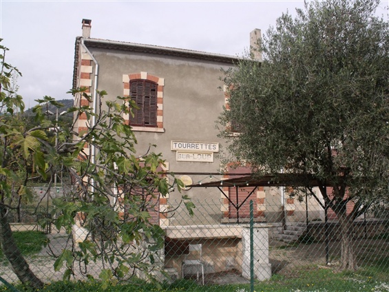A quick nip up the Ancienne Route de Vence above the old line allows a glimpse of the old Saint-Jeannet station off to the right of the road. This accurately places the station on the map. The next image is a postcard of the station in the early 20th Century.