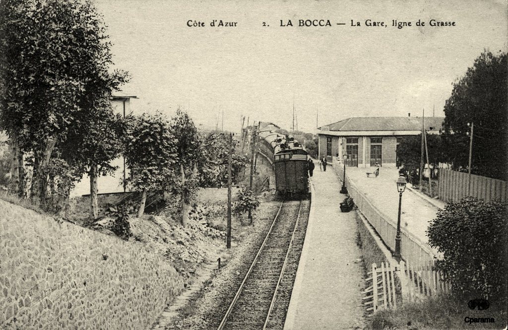 The line between Grasse and Cannes was opened in 1871 by the Chemins de fer de Paris à Lyon et à la Méditerranée (PLM). For a time, from 1910 to 1914 it served as an experimental route for 12kV/25Hz single-phase electrification. The line remained open to passangers until 1938. It was reopened for military wartime traffic in the early 1940s and after the war closed once again.