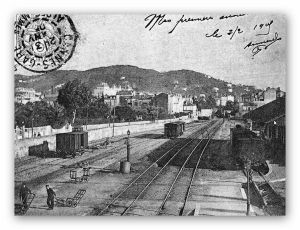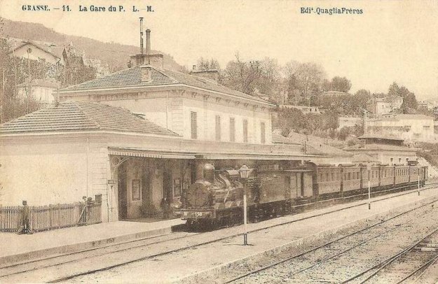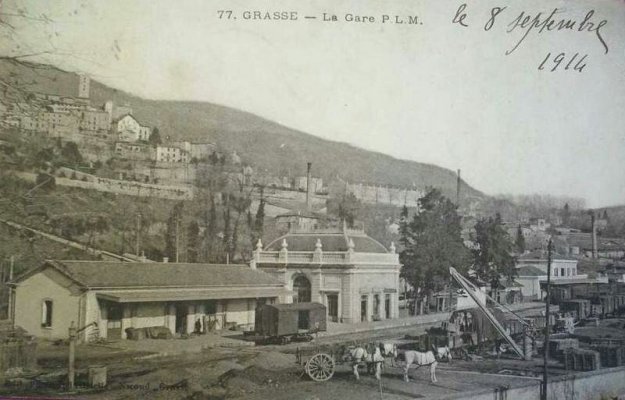 The first photo below shows Grasse PLM station just before the First World War. The locomotive in the picture is N ° 1231 built in 1856 by the workshops of the PLM in Nîmes and so already more than 50 years old!