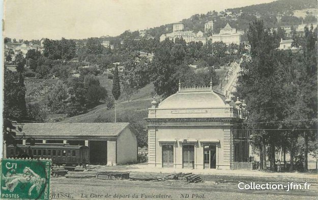 The pictures here give idea of the station and its environment. It was served by a funicular and by a tramway as well as normal road vehicles. It sat about 110 metres below the centre of Grasses and its Cathedral.