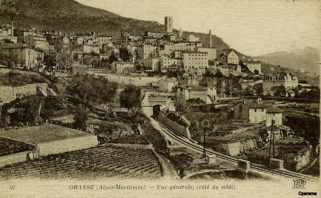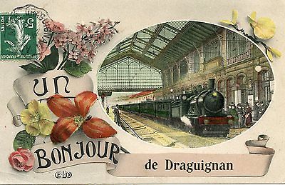 Our train can just be seen now in the old postcard exiting the tunnel portal and arriving at Varages Station.
