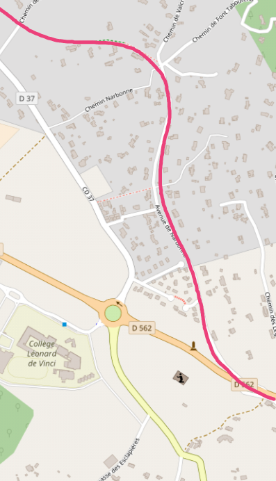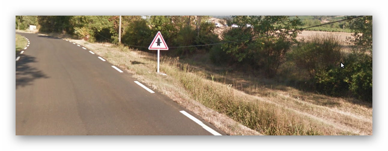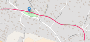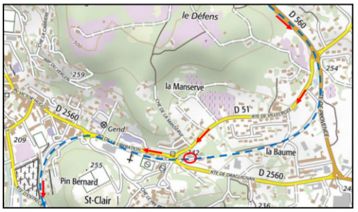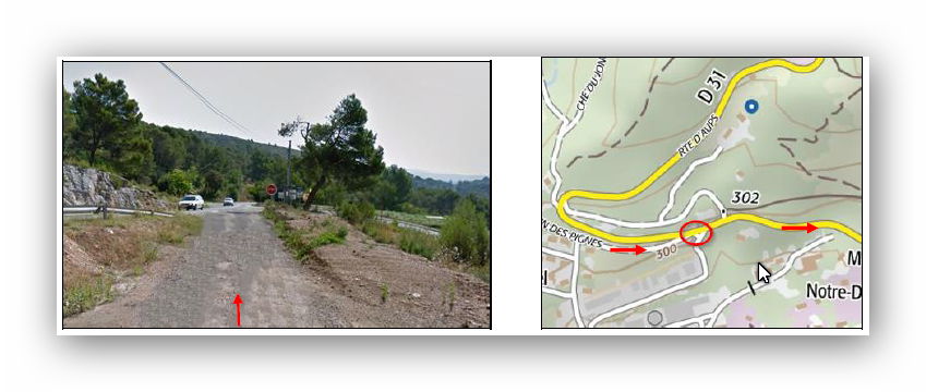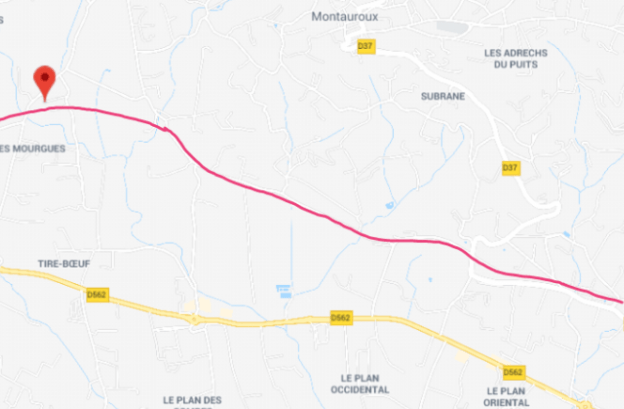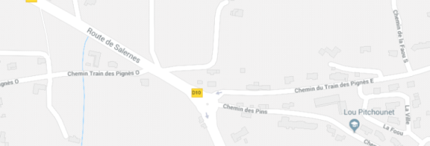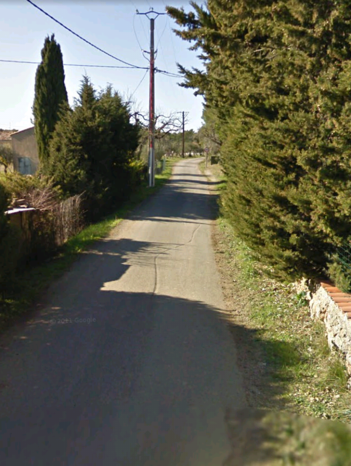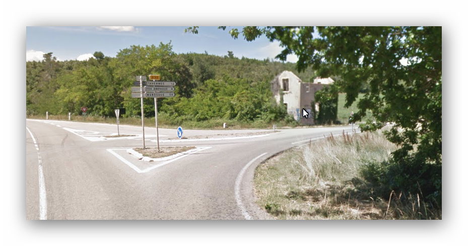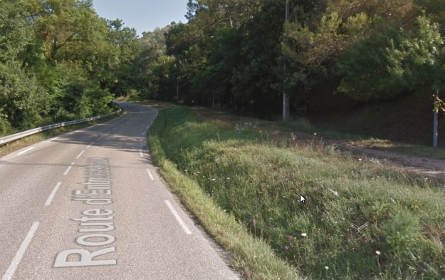 It joins the D561 just before reaching Rians and then follows that road up[ to a roundabout junction with the D3 which it crossed at grade. Evidence of the crossing point is hidden under the modern road layout. Although its route can be picked out just beyond the roundabout leading away to the north of the D3 and becoming Chemin des Herbes.