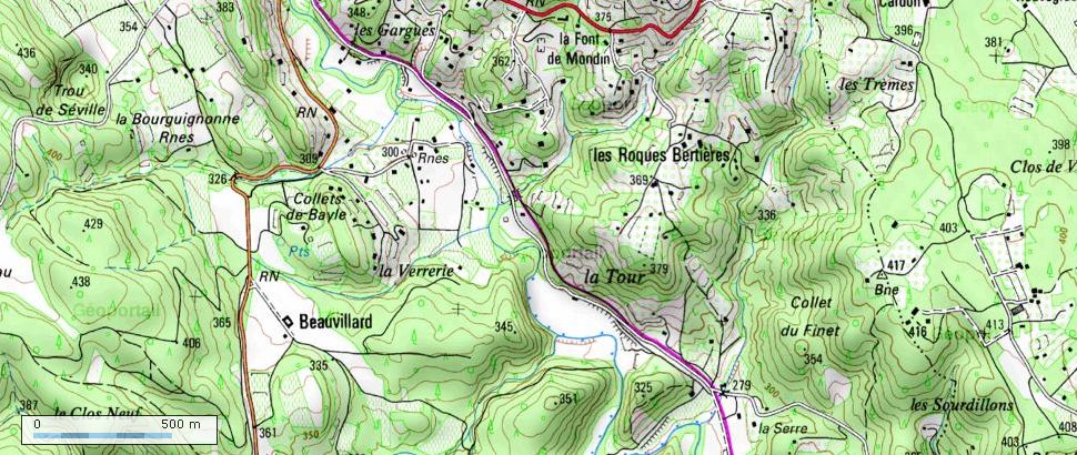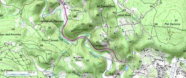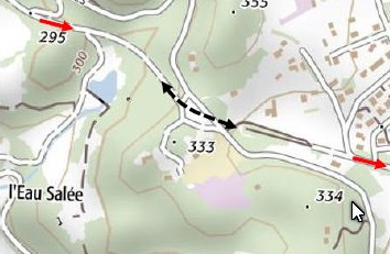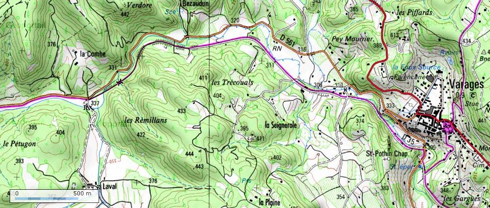 Just south of Bezaaudon and with the D561 nearby, the trackbed becomes inaccessible for a while but continues to follow the routs of the D561 but a hundred or so metres to the South.
