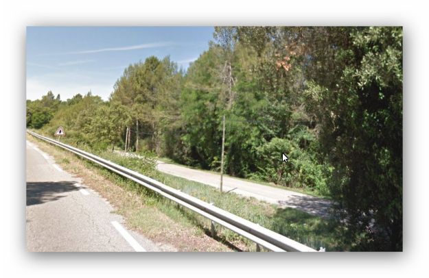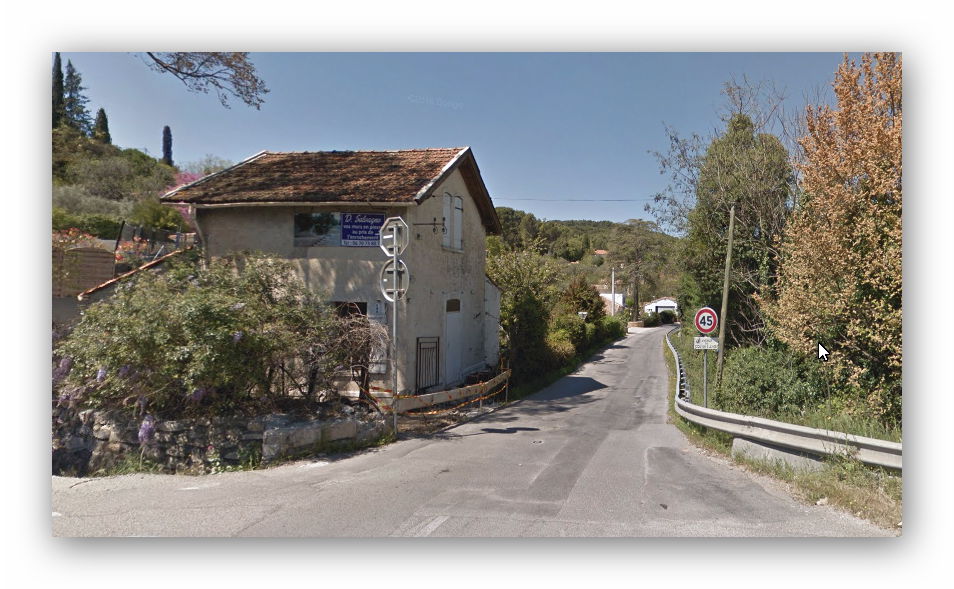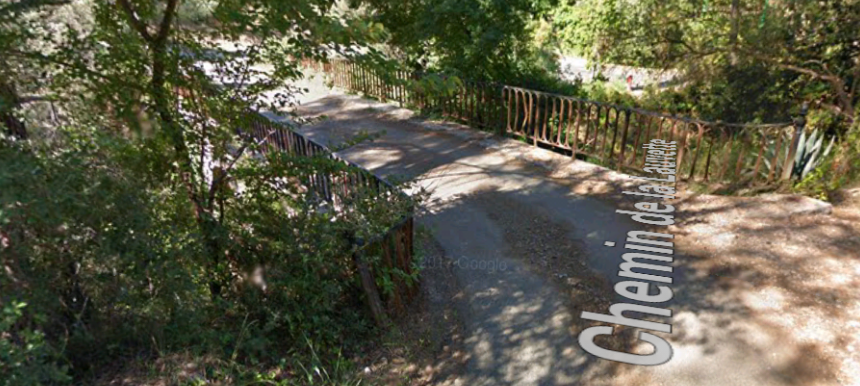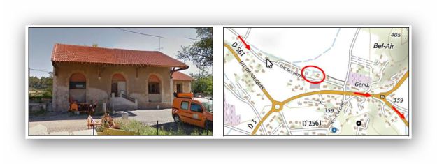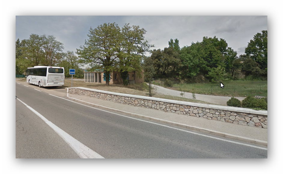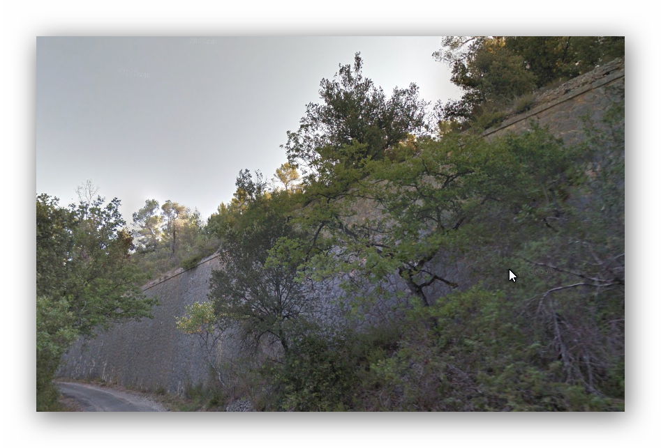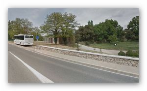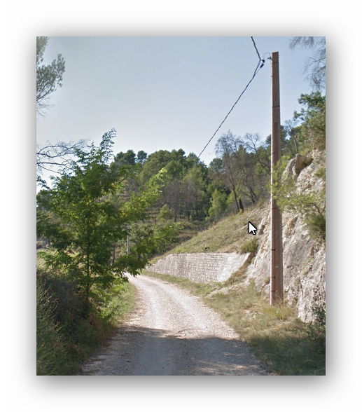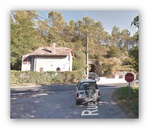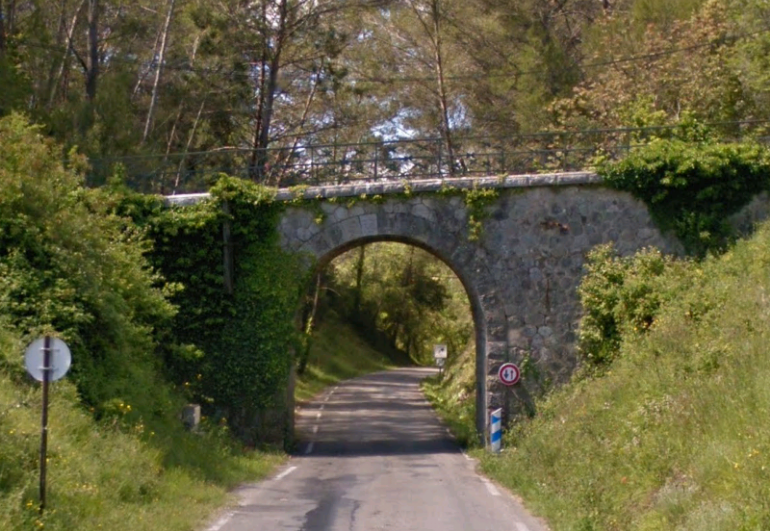 Once we leave the station travelling towards Rians we find ourselves in cutting and quickly going under a road over-bridge. The modern name for the route is HLM les Camps. The image below is from Google Streetview as is taken looking back towards Barjols Station.