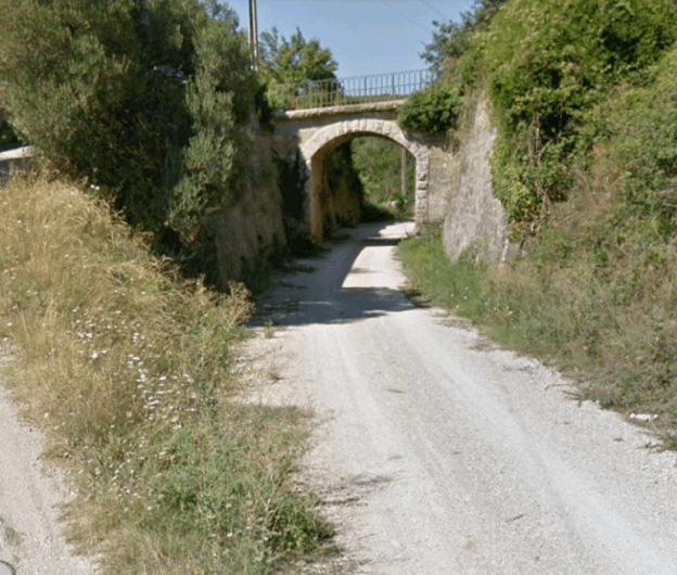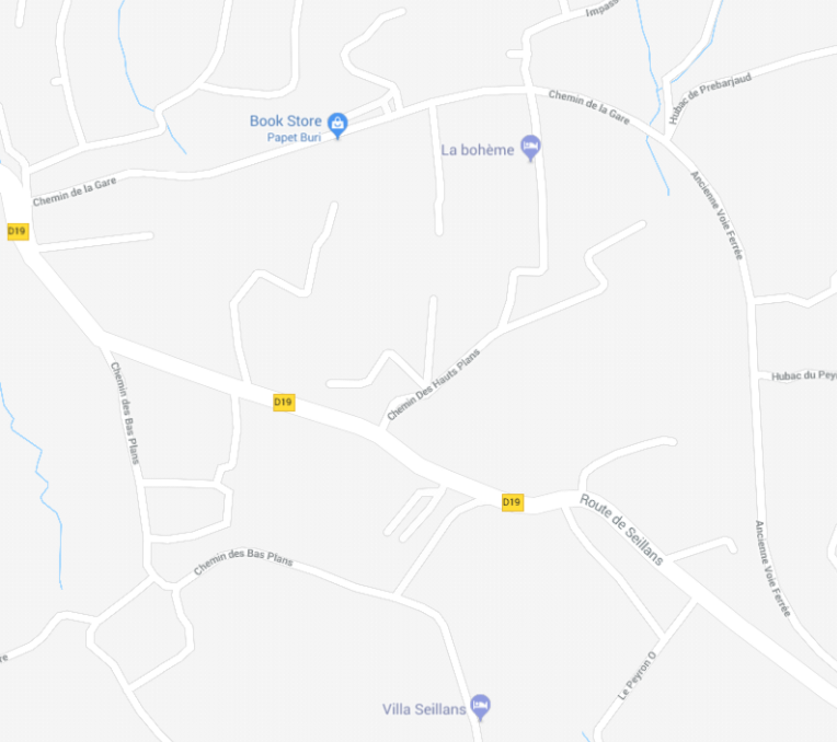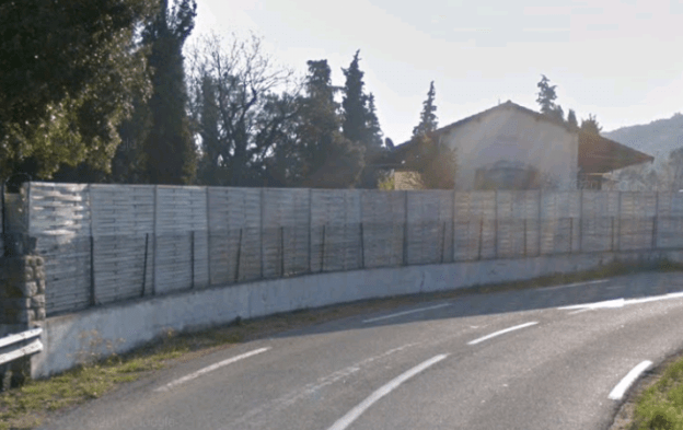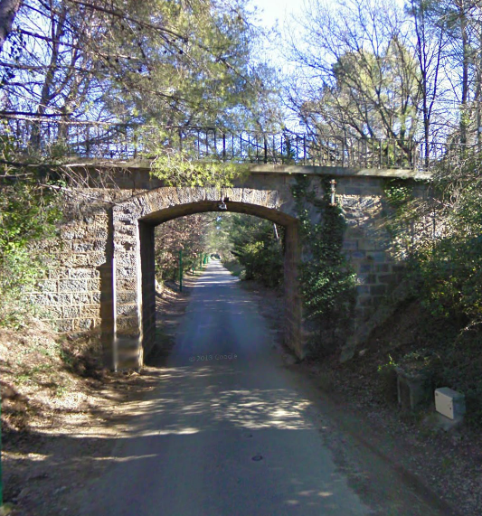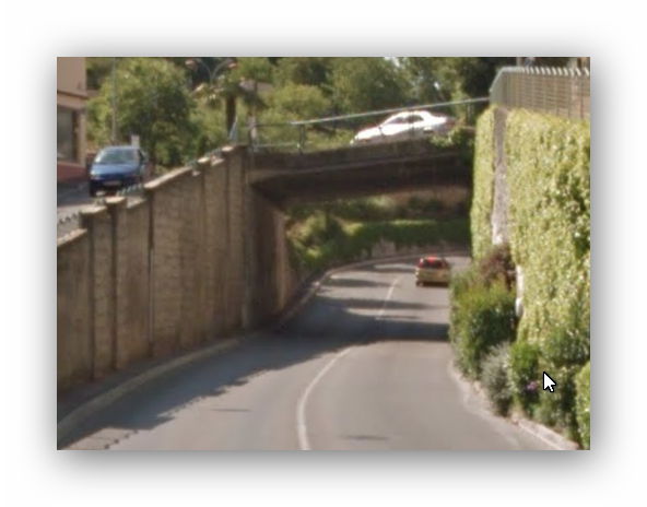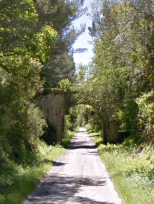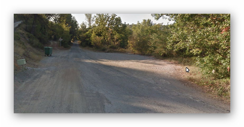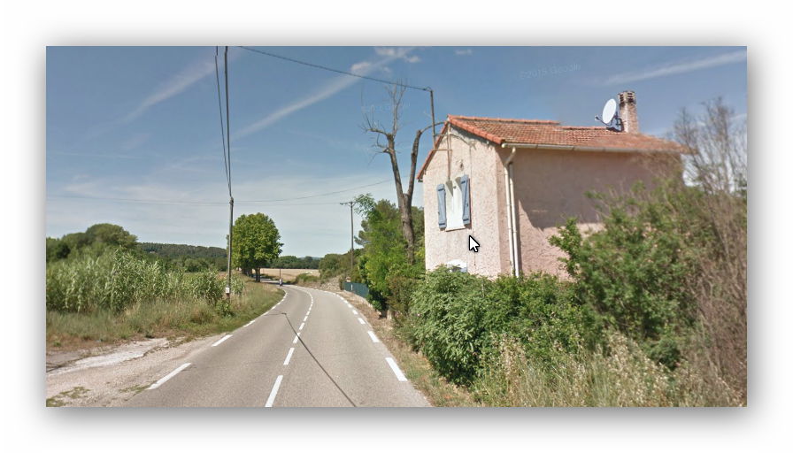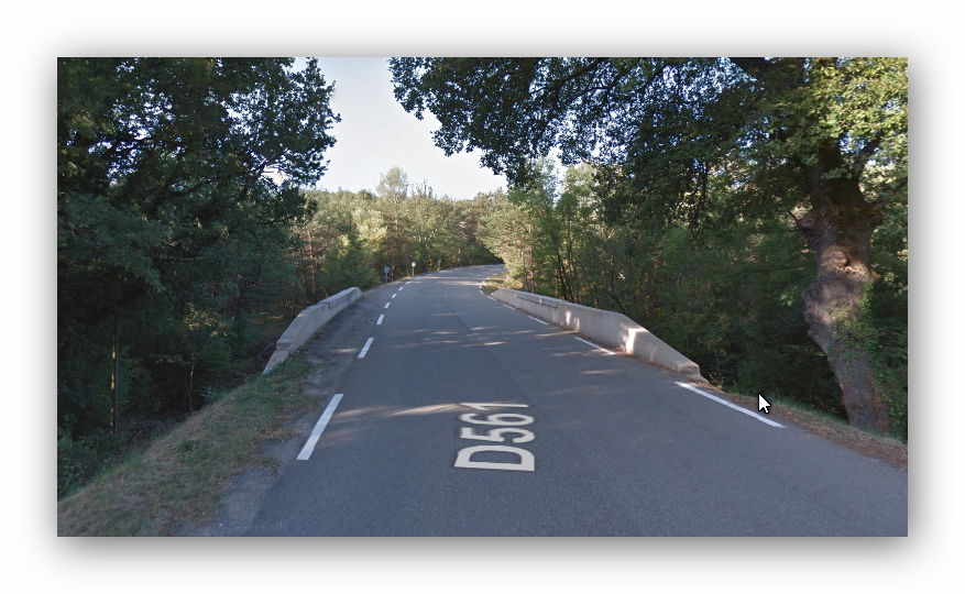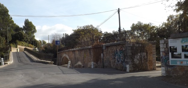 Once we leave the station travelling towards Rians we find ourselves in cutting and quickly going under a road over-bridge. The modern name for the route is HLM les Camps. The image below is from Google Streetview as is taken looking back towards Barjols Station.