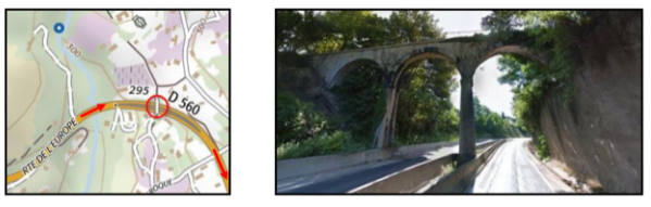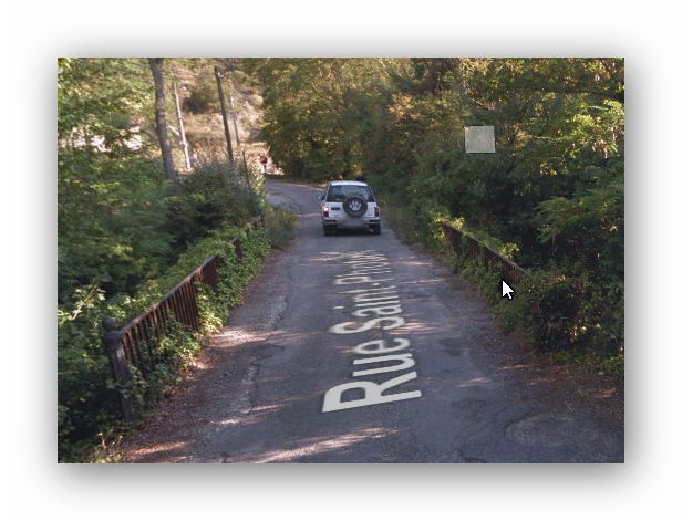 Rue Saint-Photin continues to meet the D35, crossing a river bridge en-route. The crossing keeper’s cottage can be seen at the junction, as can the portal of the tunnel beyond. The line disappeared into m a short tunnel just beyond the present D35.