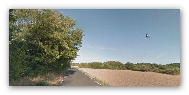 Further West the formation runs directly alongside the D561, before crossing it at grade and running on the South side of the road, hidden behind the trees in the picture below.