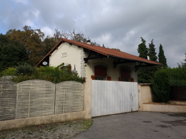The next visible structure on the route is the crossing keeper’s cottage at Les Bréguières Occidentale, Esparron. The landscape alongside the line is now predominantly made up of flat open fields and the line itself travels along the flat landscape with cuttings or embankments. Our next stop is at Esparron Station.