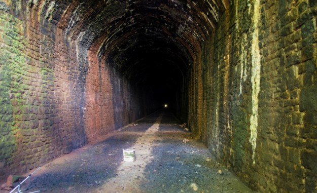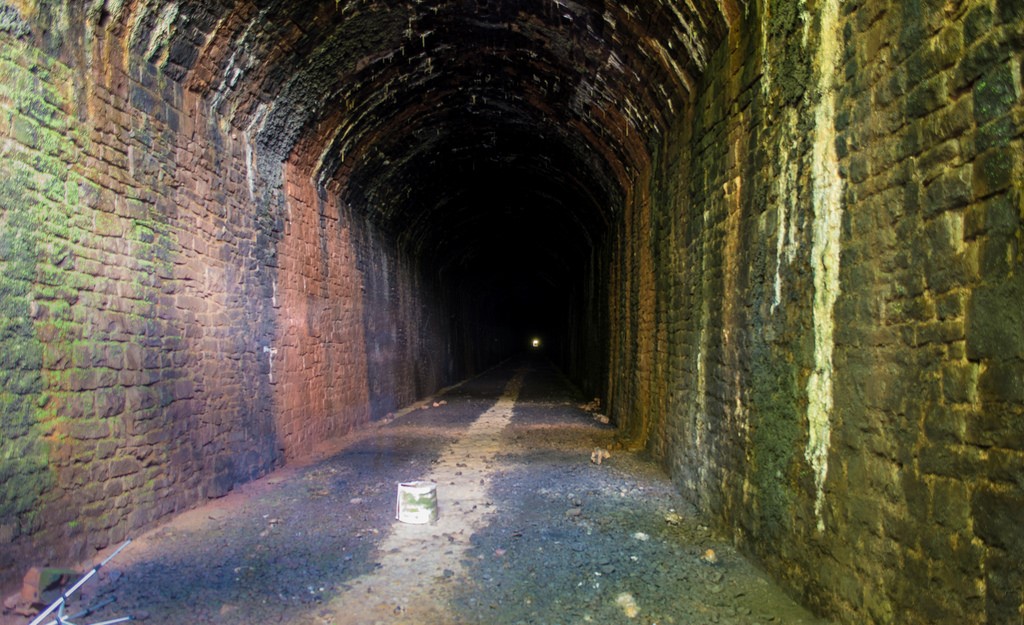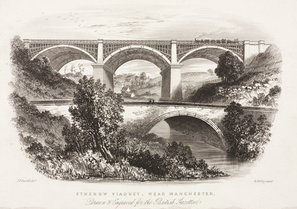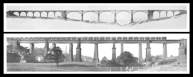 Dinting Vale Viaduct – at the top, the original viaduct, at the bottom, the later replacement.