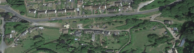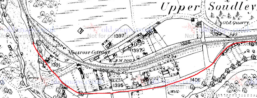 This next pair of images are difficult to tie together but the bend in the road in the modern image correlates to the bend in the centre of the older postcard. As can be seen in the old postcard the tramway was separated form the untarmacked (dirt) road by a small kerb, and the road was only wide enough for one vehicle.