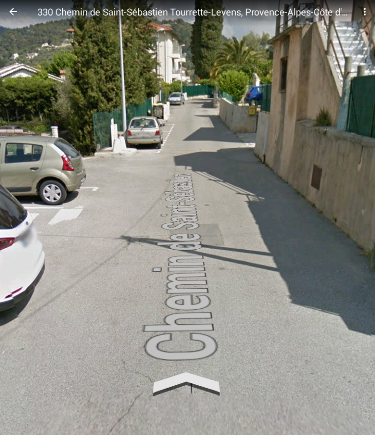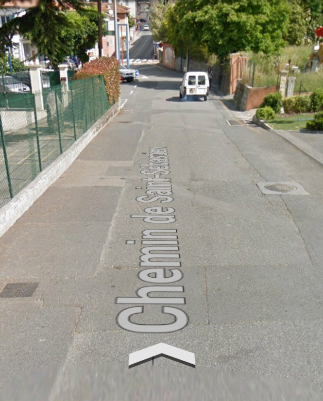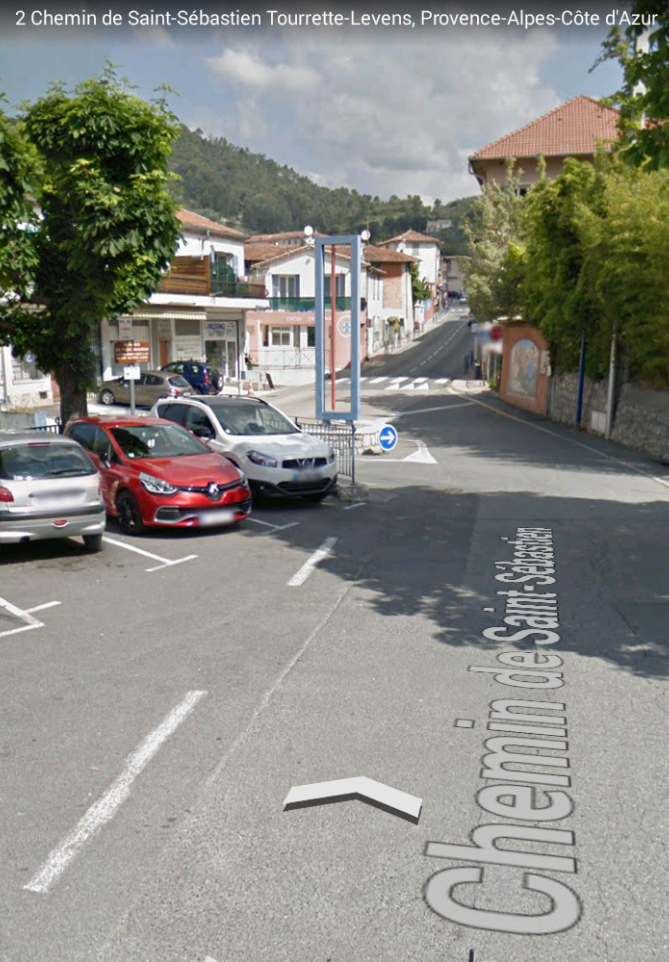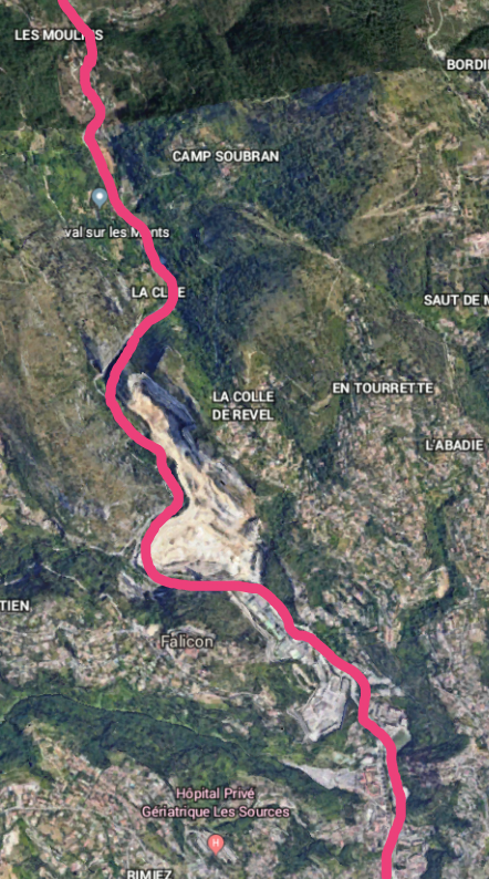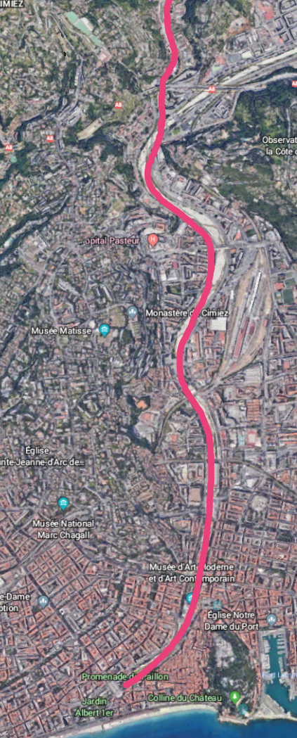 The route continues along the M19 towards Levens through Laval and closely following the North-East bank of the Rio Sec, along the Route de Levens and then Avenue Felix Faure before entering the area of Saint-Claire (the third image below).