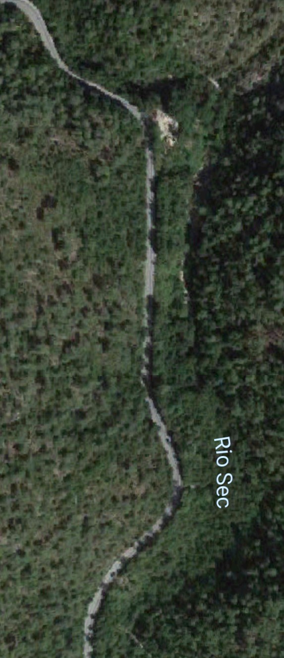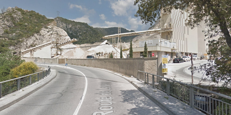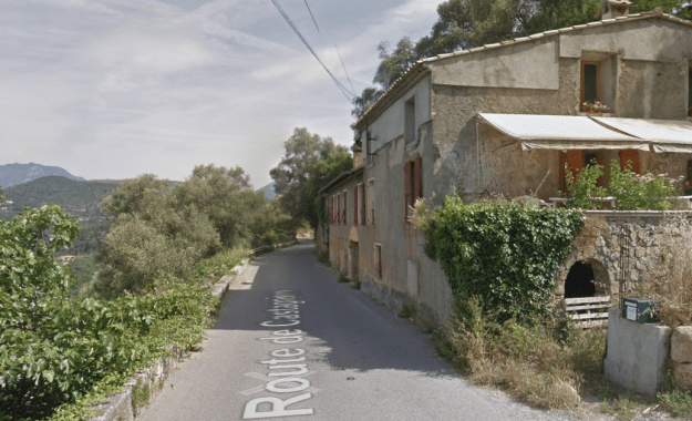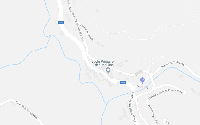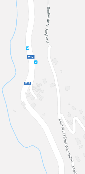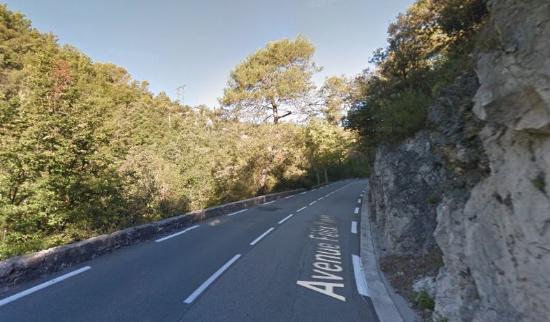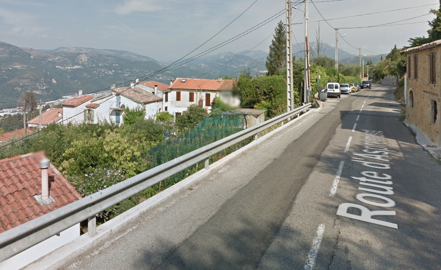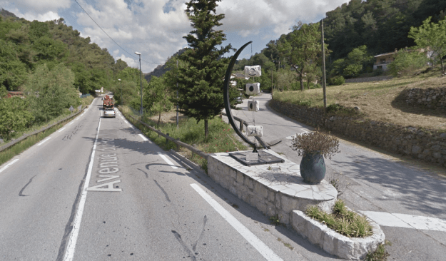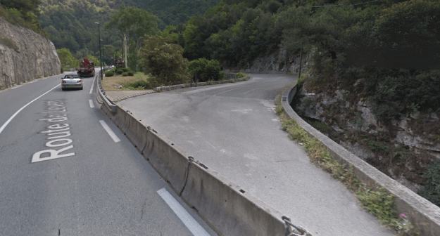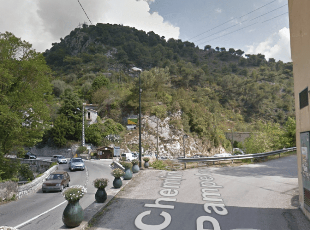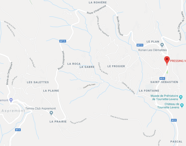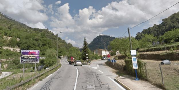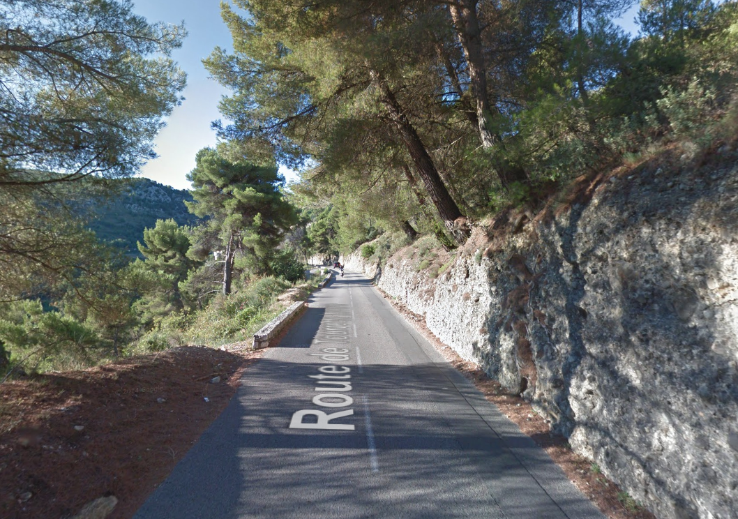 The M19 is known as the Avenue du Canton de Levens and swings north as it meets the valley of the Rio Sec. It runs high above the river in the valley below. It then crosses the river and travels on its North-East bank, towards La Columbier