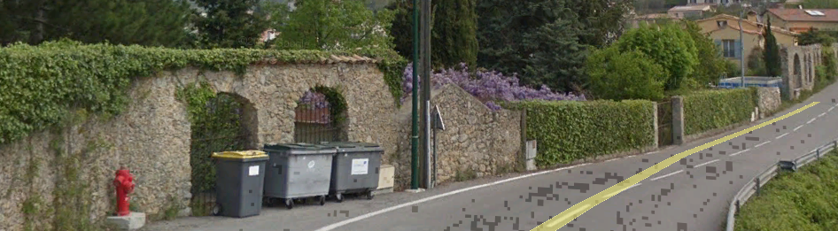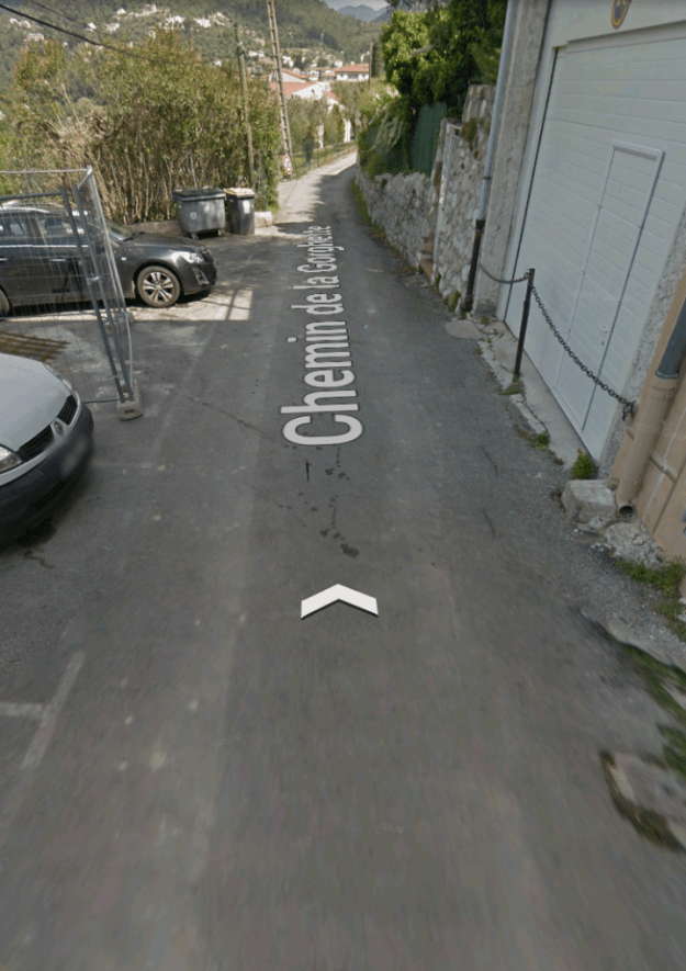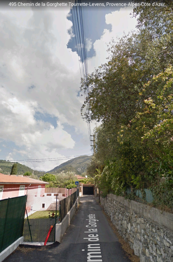 Aspremont was approached from the East. The road running North to South narrows to not much wider than what would have been the formation of the tramway in the region of La Plaine and La Prarie above. The road, by now, is known as Route de Tourrette.
