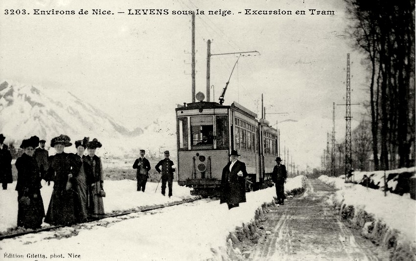Trams reached Levens (Saint-Roch) in 1908 – work had started on the line in 1906. It was abandonned by the mid-1930s. Throughout the life of the service, there was only limited take-up of the service by the public, three trams ran each day in each direction along the full length of the route, supplemented by some partial services.[4]