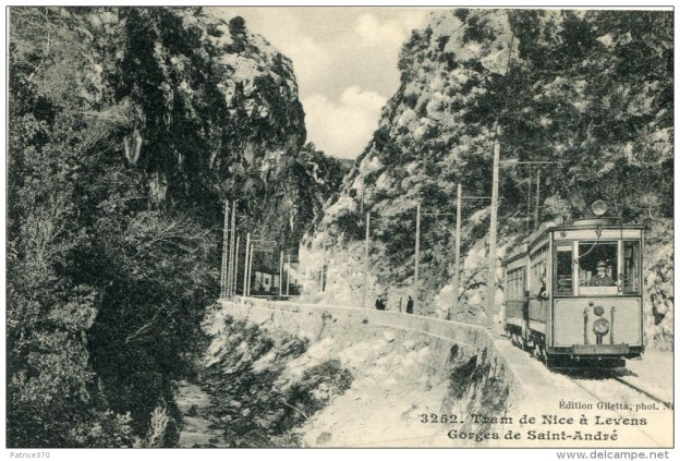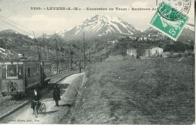 The postcard above shows the road/tramway coming in from the right towards Les Traverses and heading towards Levens in the background. Trams continued along the road towards Levens, through Les Traverses and on towards Saint-Roch where they terminated in the valley below the village of Levens.