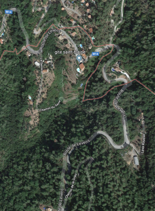 In this scenario, the tramway left Levens on the road now called the Avenue General de Gaule and then turned right onto the Route de Saint-Blaise (M14) and then followed that road all the way to Saint-Blaise.