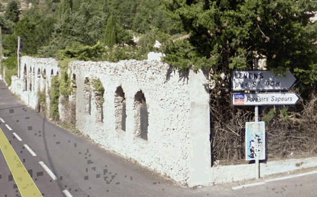 Some discussion about these images on Passions Metrique et Etroite resulted in what is now little more than a garden wall with arched openings being found on the Route de la Roquette.