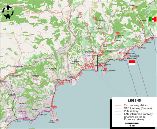 Sadly, the planned route of the tramway between St. Blaise and Tourrette-Levens is much less clear. And analysis of satellite images does not provide a great deal of information about any possible route