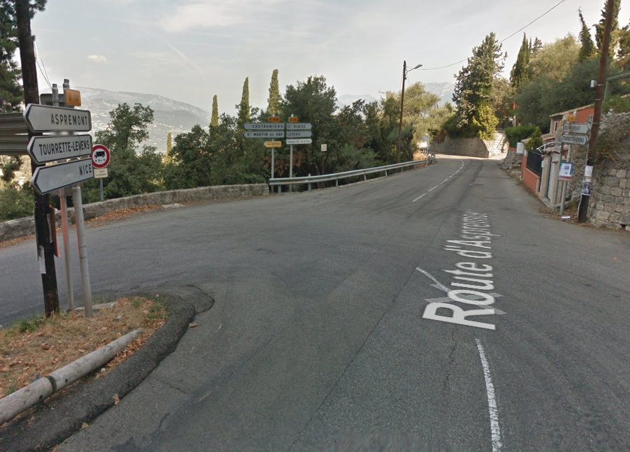 The road out of Tourrette-Levens is named Route d’Aspremont (M719). It follows the contours as much as possible, to keep gradient shallow for the trams. The route shows clearly on the map below.