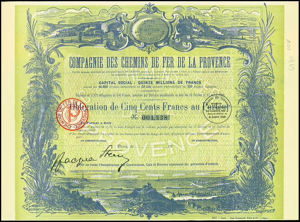 The line from Nice to Digne is the only remaining line of the former network of the Compagnie des Chemins de Fer du Sud de La France. The company was created in 1885 by Baron Jacques de Reinach, a French banker of German and Jewish origin (1840-1892).[1] At its apogee in 1910 the company looked after 879km of railways, most of these are shown on the map below.