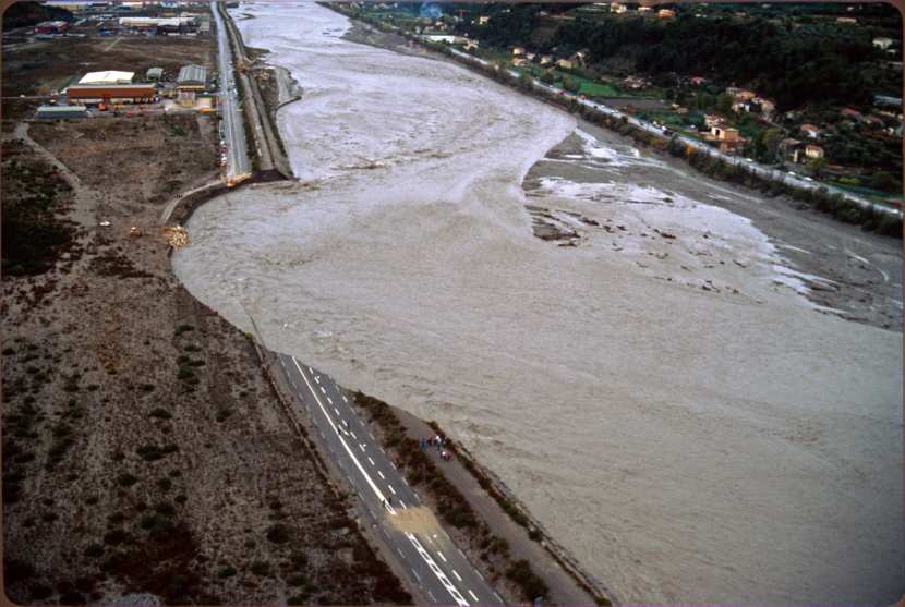 In the last two images we have, on the right: the bridge at Gueydan on the Var destroyed by the flood which would in time be scrapped and replaced by the French Army. On the left is one of the many breaches of the line.[13] Immediately below this text are two images of a similar breach which happened in 1982. Following them are three videos shot during flood flows in the Var River channel in November 2011. The first at the Airport and the other two at the bridge at La Manda near Colomars.