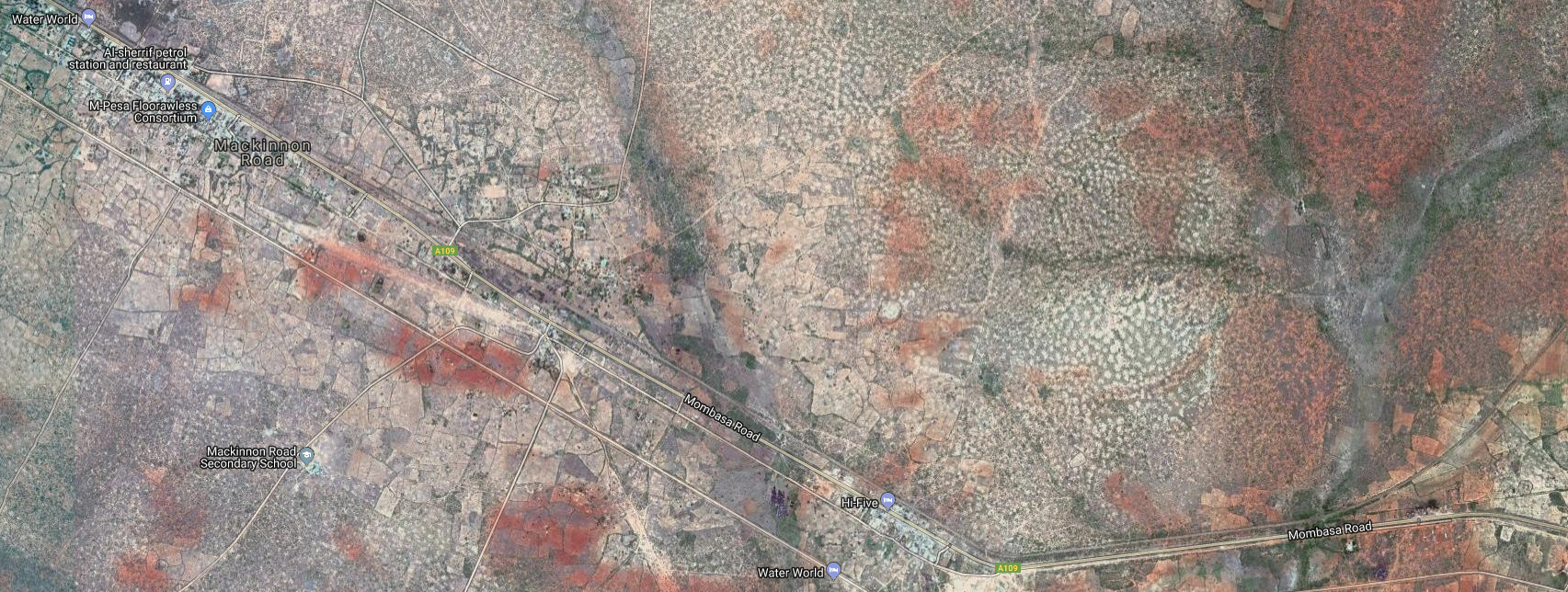 The track for the two-foot gauge trolley line came from an abortive attempt to build a railway into the interior, The “Central African Railway” which had reached a mere 11 kilometres inland from Mombasa Island![3]