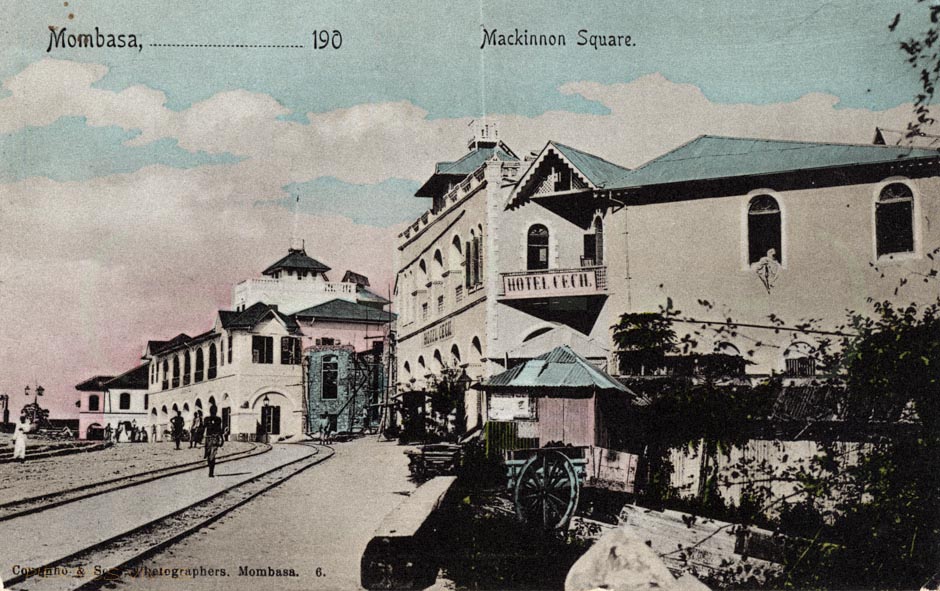 Between 1890 and the early 1920s, Mombasa Island was served by an unusual transport system. A light two-foot gauge railway line was laid across the island from Government Square (in the old port) to Kilindini docks, and on it were pushed by hand small trolleys which could carry goods or passengers. By 1903 a branch had been laid to the station (then in Treasury Square), the hospital, the sub-commissioner’s house, the lighthouse at Ras Serani, the sports club and to the cemetery.