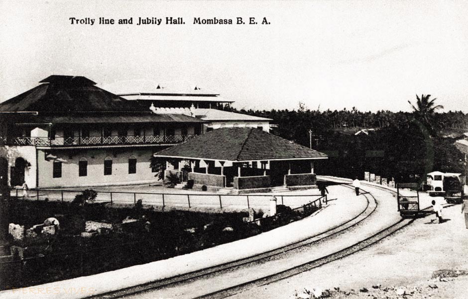 The trolley track, ran from Mbarak Hinawy Road (Vasco da Gama Street) to Government Square (Customs Area, Leven House) and on to Nkrumah Road (Macdonald Terrace) past the Old Law Court on to Kilindini. It provided access to the “Jubilee Hall” (put up to commemorate the English Queen Victoria’s diamond jubilee in 1897 and also used as a meeting place for Old Town elders until 1950’s) and veered to the right to the famous Mombasa Club which was also built in 1897 by the trader Rex Boustead.[1]