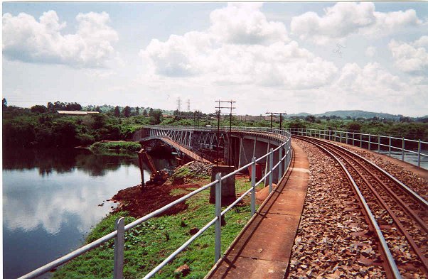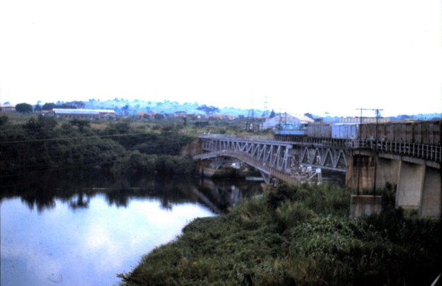 The Nile Bridge looking West in 1994. Our train has just moved on after a 6 hour delay at Jinja Railway Station.