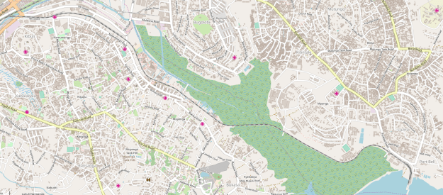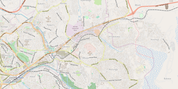 From Mukono, the railway travels North-west towards the Kampala-Jinja Road and then westwards into Kampala and its railway station which can be seen to the bottom left of the map below. before reaching Kampala Station the railway passes through Kireka close to the point that the Northern By-Pass leaves the Jinja-Kampala Road. Sporadic communter services are provided. Four pictures below show the railway at Kireka. [22][23]