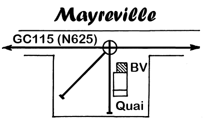 The station facilities at Mayreville were at right-angles to the line. North is once again to the left of the sketch. Passengers were not provided with a platform.
