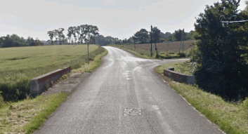 Evidence of the existence of the tramway between Belpach and Plaigne is sparce. This image may be the best evidence we can find. At this point on the road we know that the tramway was on the north (left) side of the road. The culvert is wider on the left than on the right which suggests room left for the tramway.