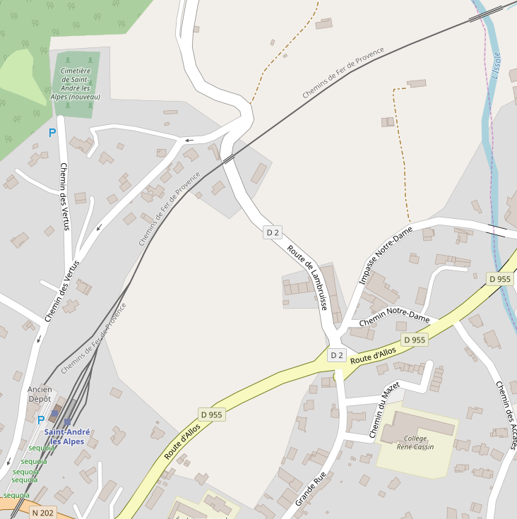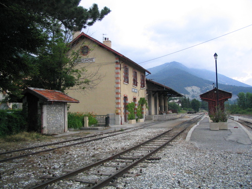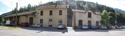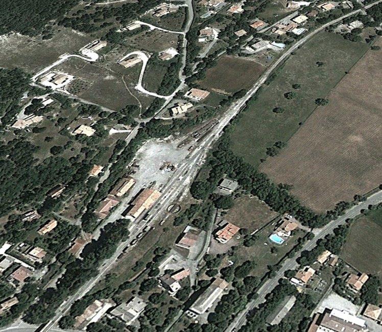 The station has almost entirely disappeared and its site was occupied in 1934 by “La coopérative de Hers, Vixiège et Razes” which is now the “Société Coopérative Agricole Arterris”. The engine-shed apparently still exists but has been incorporated into a complex of other buildings and only the gable-end can be picked out. [6]