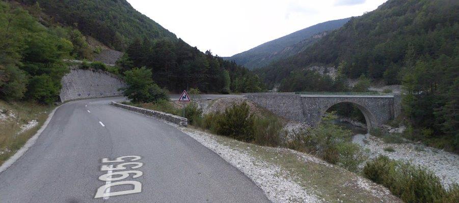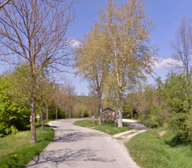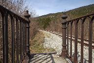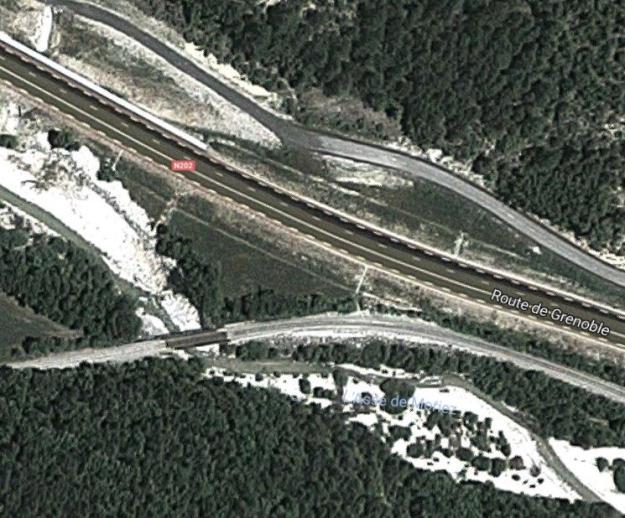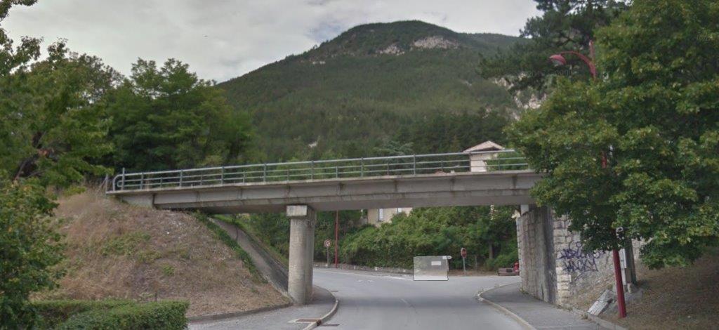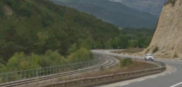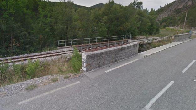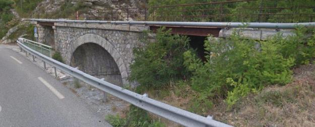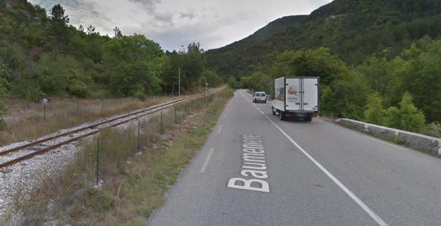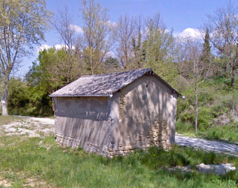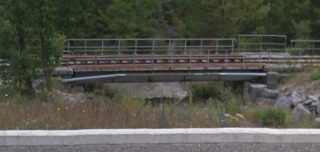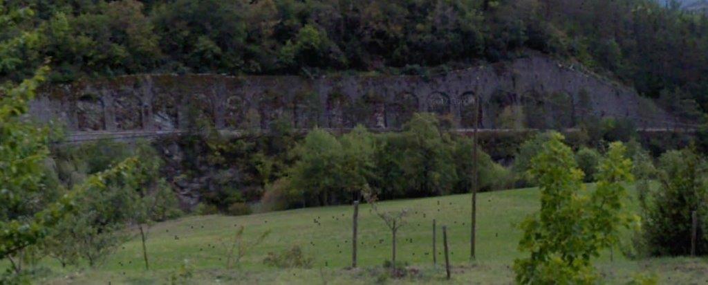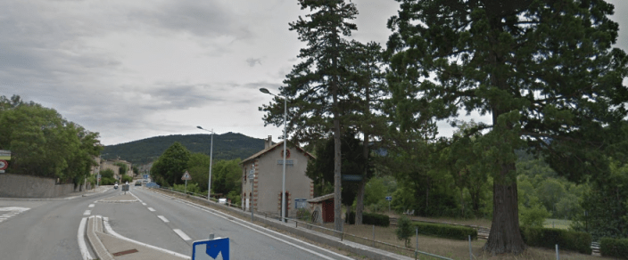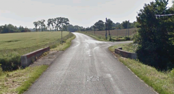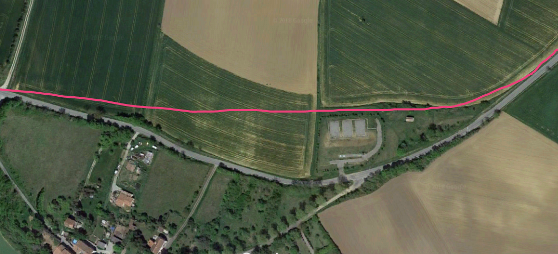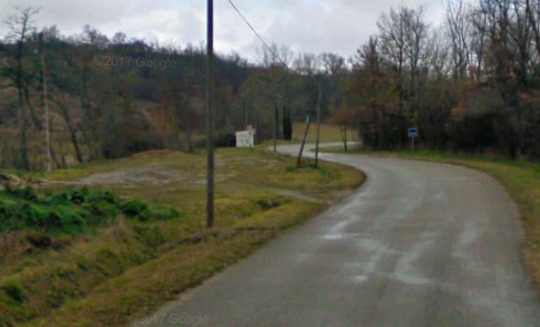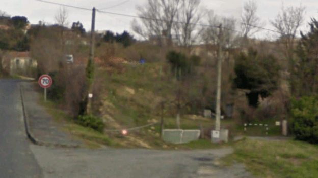 The tramway from Peyrefitte-sur-l’Hers followed the northeastern shoulder of the GC15 (D625) towards the village before deviating to the right down what is now a green-lane. In the Google Street view image below the rout can be seen on the right with a yellow and black painted metal hurdle preventing vehicular access.