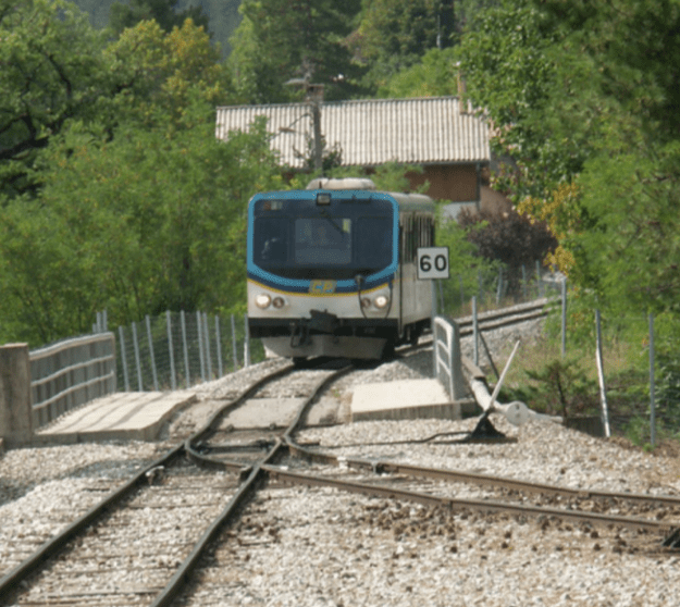 At the East end of the passing loop, the tramway crossed the GC15 (D25) so as to be on the West side travelling North. From Pecharic et le Py, the tramway and road travelled in a generally northerly direction through a series of halts and stations which included, le Py (halt), Pech-Luna, Mayreville and Peyrefitte-sur-l’Hers.
