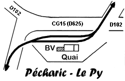 Not so far north of the river the tramway reached Pecharic et le Py. This time the sketch map in oriented as one would expect with North at the top. [6]