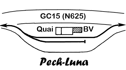 The sketch plan of Pech-Luna Station shows similar facilities to other stations on the route. North is approximately to the left of the sketch.
