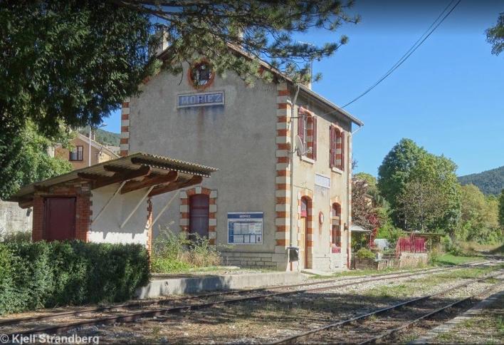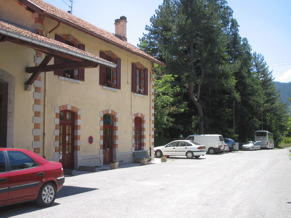 The station building at Pecharic et le Py taken from a vehicle approaching from Paigne.