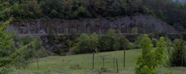 The images below show the stations, starting with that at Pech-Luna. The first photograph shows the approach to the station site. The tramway was on the left (west) side of the road and the tiny hamlet off the picture to the right. The open areas in the picture was the station area. All structural evidence of the tramway has been removed and a bus shelter sits forlornly awaiting the next service.