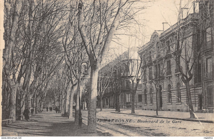 - https://www.delcampe.net/fr/collections/cartes-postales/france/narbonne/aude-11-narbonne-joli-plan-sur-les-boulevards-de-la-gare-et-du-college-avec-voiture-ancienne-animation-janson-343316390.html, accessed on 2nd November 2018.