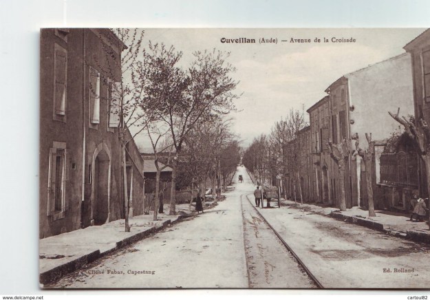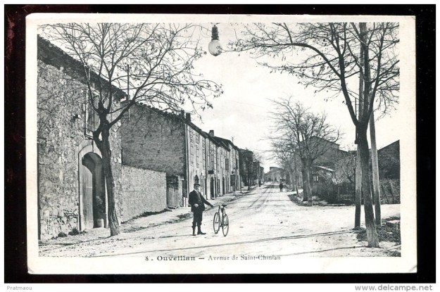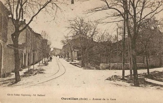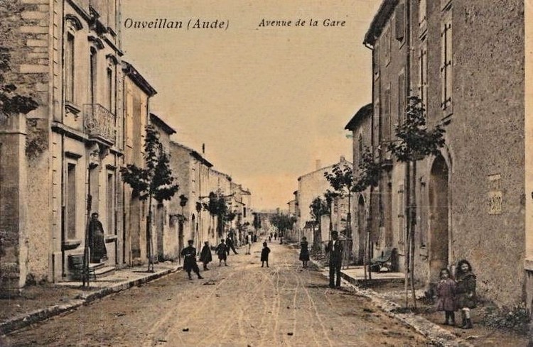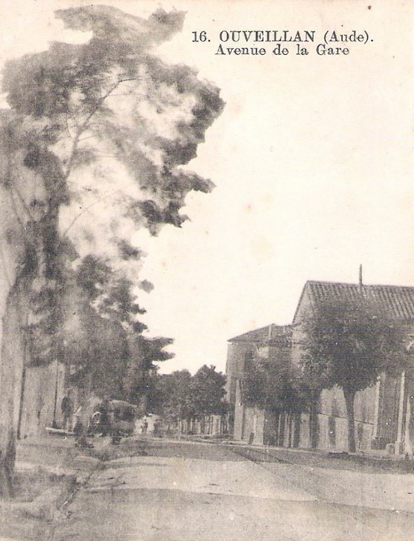 Avenue de la Gare was also known as Avenue de Saint Chinian. It bears that alternative name today and is part of the modern D13. This postcard view looks back Southeast towards the centre of Ouveillan. [1]