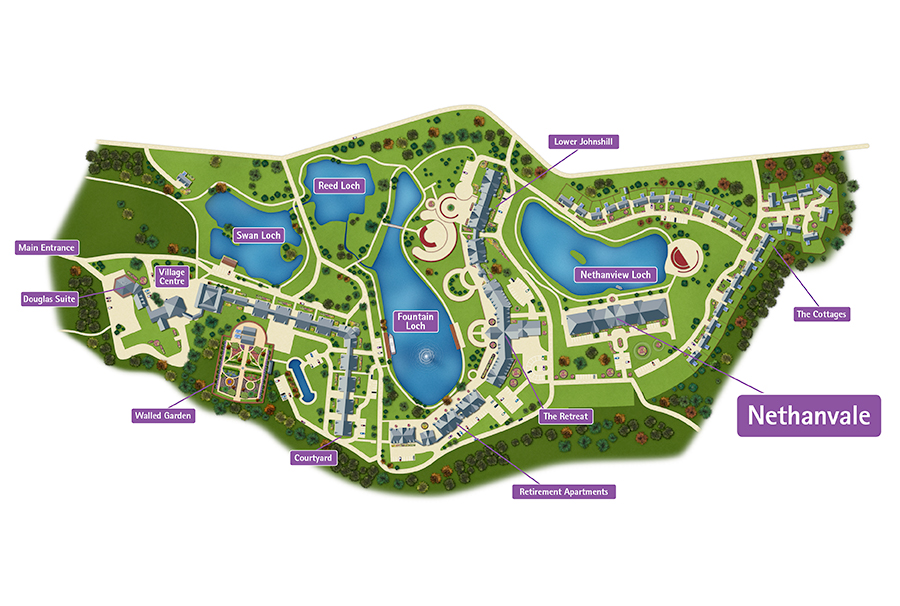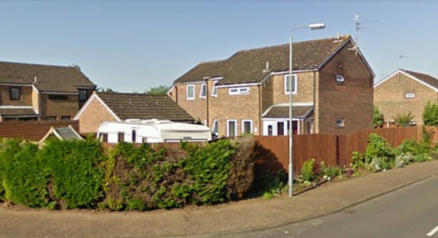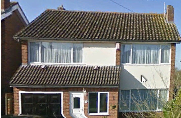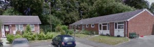 Almost exactly the same location in the early 21st century. The station site is to the right of the main road beyond the houses.