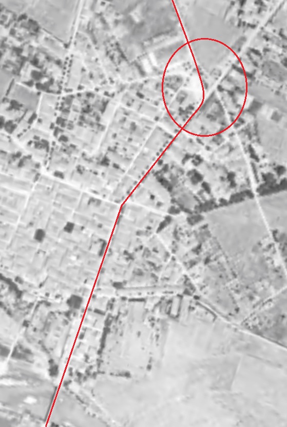The tramway passed under the Standard Gauge line as shown in the 1930 aerial image above and then turned North around the boundary wall of the station goods yard. [10]