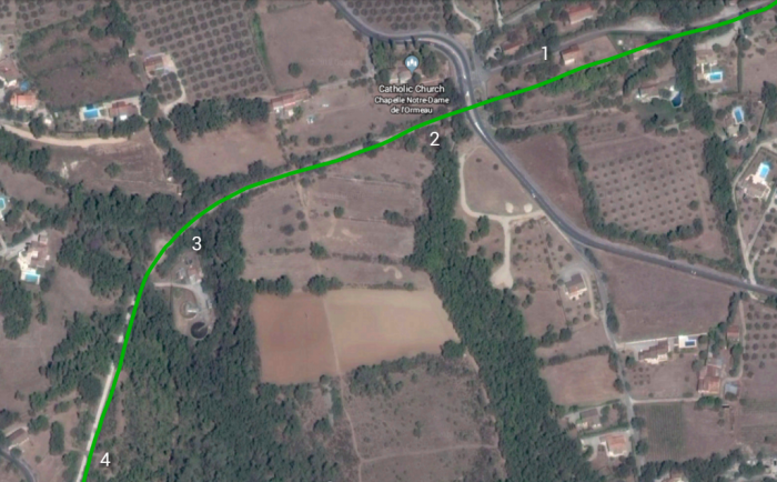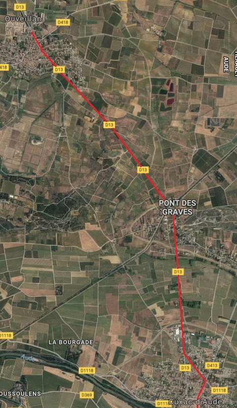 The journey from Pont des Graves to Ouveillan was direct and level, following the D13.