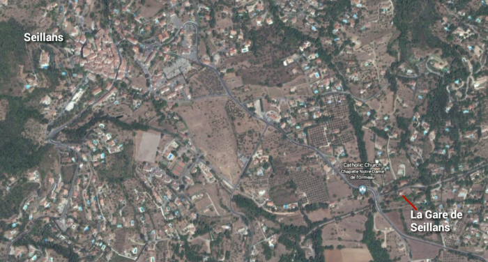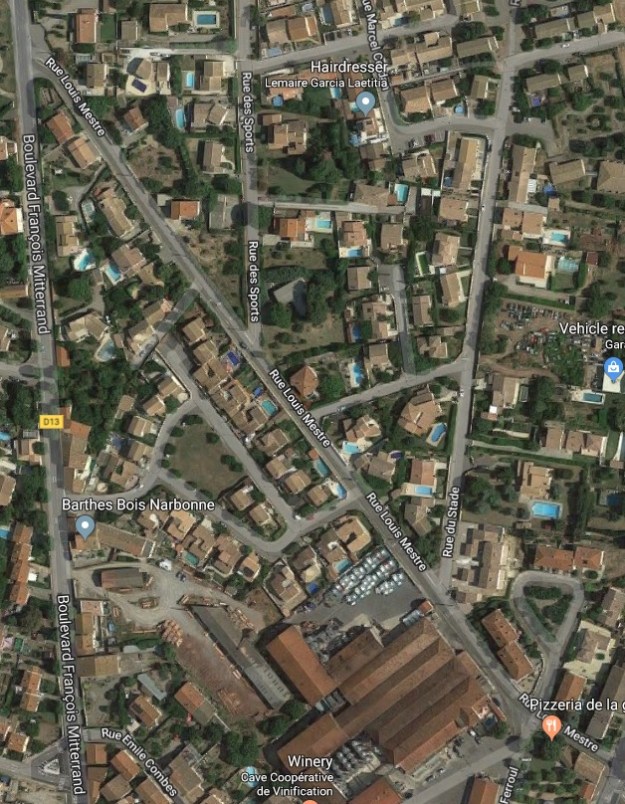 In the light of the size of other Tramways de l’Aude stations the terminus at Ouveillan was well provided for in infrastructure terms and it was sited adjacent to what would become the wine co-op buildings of the town which can be seen in the Google Streetview image above. [12]