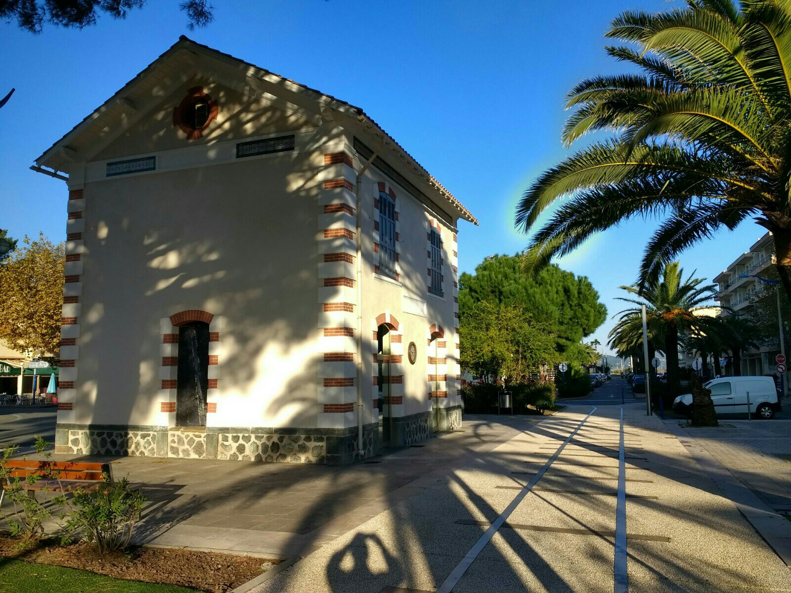 The station was in the open area to the right of the plane trees.