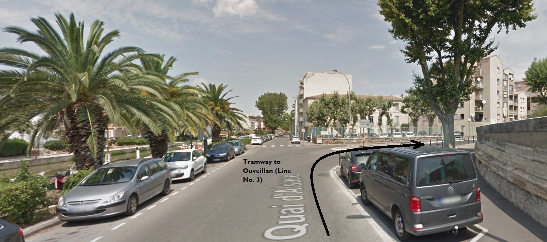 The tram continues heading South towards the Canal du Midi. [8]