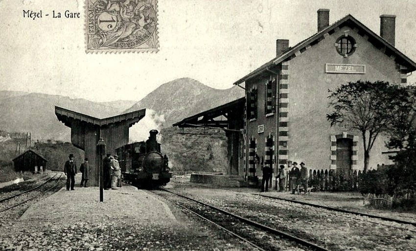 I have one photograph of a 2-4-0T locomotive on the Nice to Digne line.A 2-4-0T built by SACM stands at Mezel Station. The loco was in the series No. 5 – No. 12. The picture was taken when the line was completed as far as St André-les-Alpes only. [3][12] “The Société Alsacienne de Constructions Mécaniques (SACM) [Alsatian corporation of mechanical engineering] is an engineering company with its headquarters in Mulhouse, Alsacewhich produced railway locomotives, textile and printing machinery, diesel engines, boilers, lifting equipment, firearms and mining equipment. SACM also produced the first atomic reactor at Marcoule. The company was founded by André Koechlin in 1826 to produce textile machinery. In 1839, he opened a factory to build railway locomotives at Mulhouse in Alsace. The business grew rapidly but in 1871, the annexation of Alsace-Lorraine by Germany, brought about the transfer of some production to Belfort in France. In 1872 the company merged with the Graffenstadencompany of Illkirch-Graffenstaden (a suburb of Strasbourg) to form SACM.” [23]