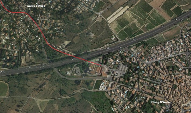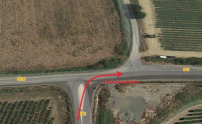 North of Vinnasan, the tramway followed the modern D31 north to a T-junction with the road between Coursan and Salled’Aude. The present day D1118 meets the D31 and the D31 turns East to Salles d’Aude.